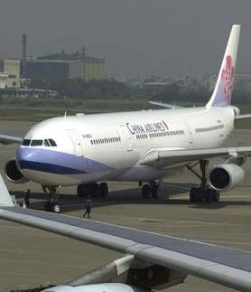 An Airbus 340-300 of Taiwan's China Airline prepares to take off from Chiang Kai-Shek International Airport in southwest of Taipei Wednesday. The biggest airline of the island said Wednesday it has received Beijing's approval to allow its Europe-bound flights to fly through mainland airspace to avoid the Mideast during the Iraq war. It's the first time in more than five decades that Taiwanese aircraft are allowed to fly over Chinese mainland. [AP]