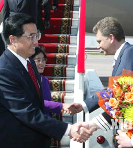 Chinese President Hu Jintao arrived in Moscow on Monday afternoon for a three-day state visit to Russia, in his first overseas trip since elected as the President of the People's Republic of China