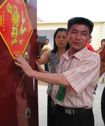 A immigrant from Chongqing inspects his new